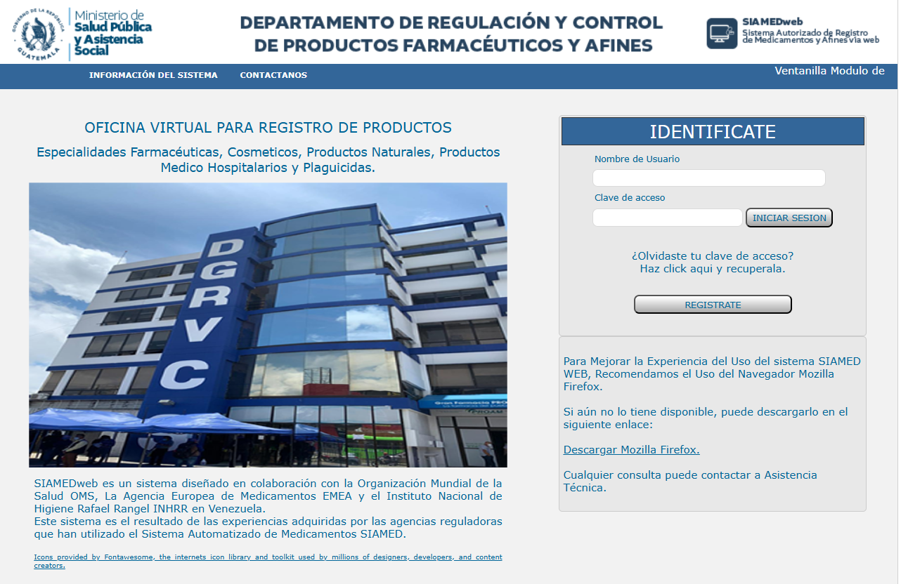 Dicha plataforma nació de la colaboración entre el Sector Público y Privado (Cámara de Industria y su Gremial de Farmacéuticos) para fortalecer la capacidad operativa de la Dirección General de Regulación de Vigilancia y Control de la Salud (DRVCS).